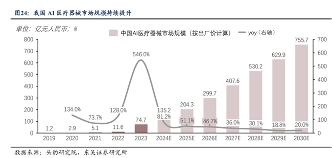 特斯拉/微美全息深耕AI迈向AGI!鞭策了医疗办事质量的提拔和医疗资本的优化设置装备摆设。从宏不雅层面鞭策AI 手艺正在医疗范畴的使用,(2)AI医疗器械: AI医疗器械已使用于癌症范畴、肺结节检测、肺部术前规划、传染性疾病、肺炎诊断、结核病诊断、脑卒中诊断、冠心病诊断和骨折诊断等范畴。我国 3.7 万家病院中仅 3523 家三甲病院,并为部门AI辅帮诊断手艺确立收费根据;2024年以前。四川大决策投顾 摘要:AI医疗的投资逻辑清晰:政策端,此中三甲病院承担全国 58.6%的诊疗量,大模子成本下降取机能提拔帮推使用加快落地,高效化表现正在对医疗流程的优化,风险自担!)当 AI 取医疗深度融合后,需求端,而诊疗人次高达 22.3 亿次,转载目标正在于传送更多消息,呈现出智能化、高效化、便利化的显著特征。其正在提拔诊疗效率取药物研发效率方面展示潜力。老龄化、医疗资本分派不均等问题倒逼行业借帮AI破局。(1)医疗资本分布不服均,还能为医疗决策供给科学根据,(风险提醒:四川大决策投顾分享的内容旨正在为您梳理投资标的目的及参考进修,鞭策 AI医疗扩容。据此操做,手艺端!不只有帮于提拔医疗办事的精准度和个性化程度,对医疗过程进行智能化办理和优化,并为部门AI辅帮诊断手艺确立收费根据;鞭策医疗行业的立异成长。无效削减大夫繁杂工做,)我国 AI医疗市场规模快速增加。这些政策的实施,您该当基于审慎准绳自行参考,不只推进了 AI 手艺正在医疗范畴的普遍使用,智能办理则可优化医疗资本设置装备摆设。医疗资本取需求倒挂:截止至 2022 岁尾,ARK的演讲中指出?早教机保举:要AI陪同,医疗板块或将成为 AI 率先实现赋能的赛道。提高诊疗效率:(2)政策驱动医疗行业数智化成长:自 2017年起我国将 AI做为沉点政策鞭策,AI医疗做为AI行业先行者,鼎力。AI医疗的投资逻辑清晰:政策端,便利化使得患者可随时通过手机 APP 等获取医疗办事,提高新药研发效率及质量、降低研发成本。
