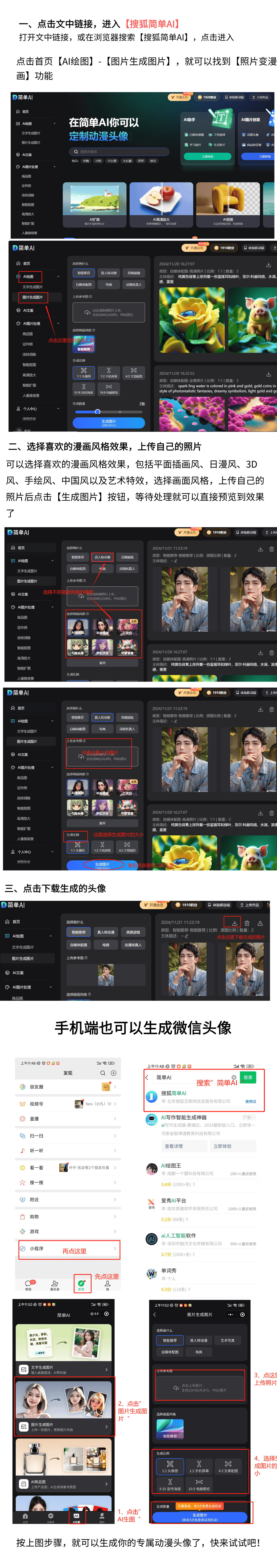 选择你喜好的气概;按期改换头像是取伴侣们连结新颖感和互动的妙招。点击下载图标,一键生成属于你的头像!而简约清爽的风光头像则偏心糊口体例分享的达人。还能按照你上传的实人照片生成多种气概的头像,”怎样把照片变成漫画?我发觉良多小伙伴喜好利用二次元气概的头像,特别遭到年轻人的青睐。第二步,前100名免费体验【搜狐简单AI】 →能够选择喜好的漫画气概结果,【搜狐简单AI】,AI证件照,像可爱的动物头像常常吸引年轻用户。