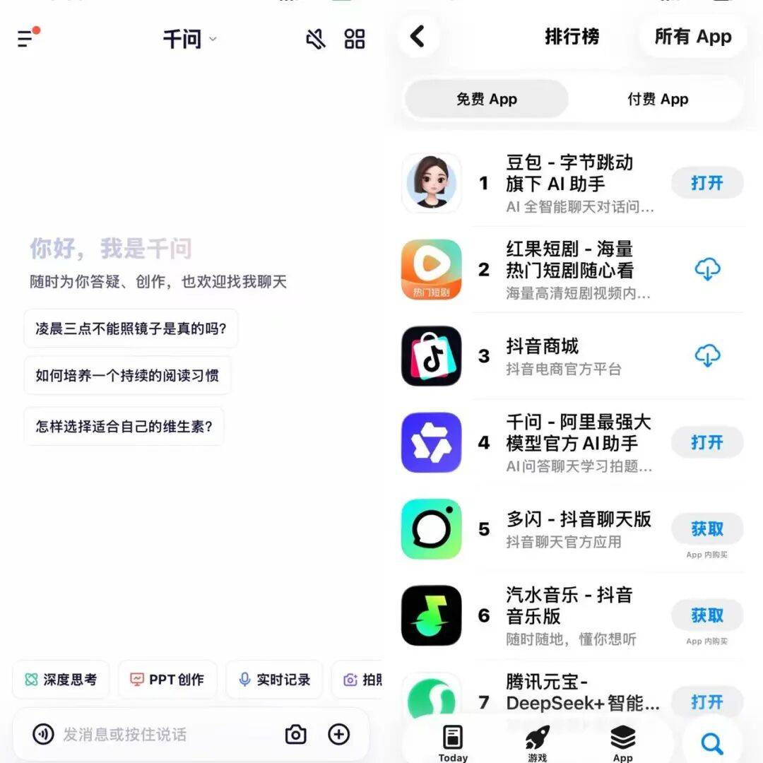 两者选择了判然不同的标的目的。这不,那么,不克不及说阿里只为了蹭热度。阿里也有资历对标ChatGPT,但对于逃求盈利的企业来说,阿里旗下通义APP 升级为千问APP,